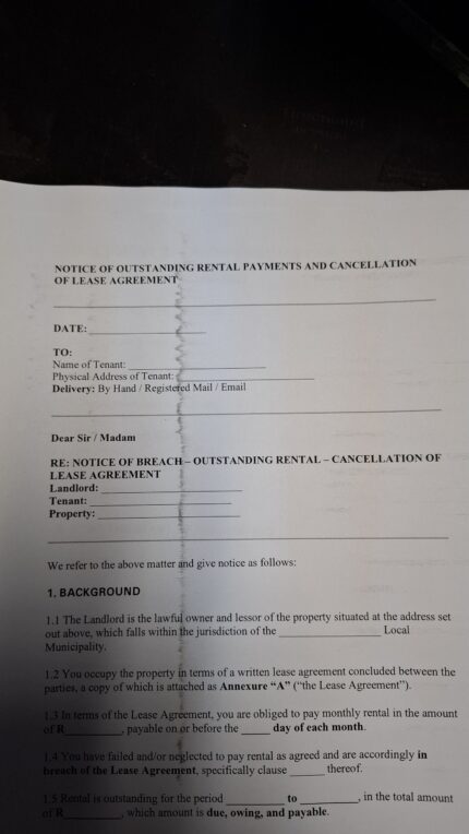 Although every effort has been made to ensure that the documents are legally sound and up to date with applicable South African legislation, the purchase or download of any document from this website does not create an attorney–client relationship between the purchaser and the website owner.
